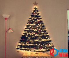 Bạn muốn có được một cây thông nhỏ xinh không chiếm quá nhiều diện tích? Dây tua rua kết hợp cùng đèn trang trí là vừa đủ để bạn có được một cây thông rực rỡ. Đầu tiên, hãy chọn những đoạn dây tua rua, đèn nhấp nháy với màu sắc tùy thích và dán chúng lên tường như hình bên dưới. Nếu muốn cây thông lộng lẫy hơn, bạn có thể đính thêm quả châu, bông tuyết hoặc phụ kiện trang trí khác tùy theo sở thích. Sau đó, chỉ cần bật đèn là bạn đã có được cây thông vừa lung linh, vừa nhỏ gọn.